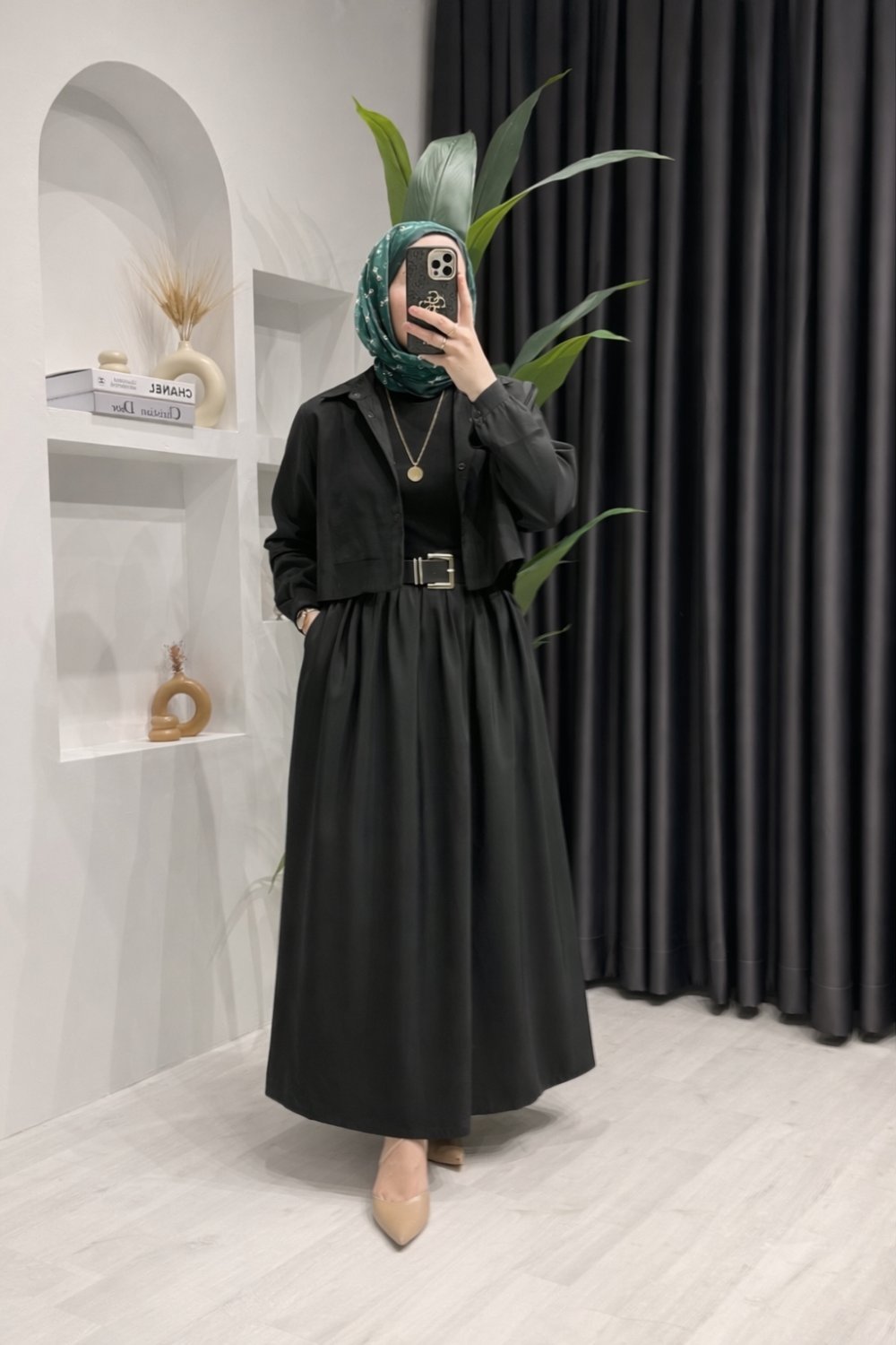 Kemerli Gömlekli Elbise Siyah